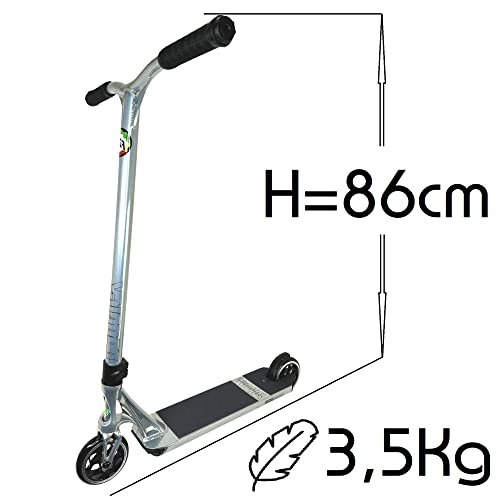 Ruote: 120 mm x 24 mm "Gap" Core ruote 86a PU | Freno: nylon Bolt On - vite freno 5 mm | Peso: 3,5 kg ! La somma degli articoli dello scooter è superiore a 360€. Così un ottimo affare per lo scooter Complete costruito con le parti Top10 per monopattino da acrobatica