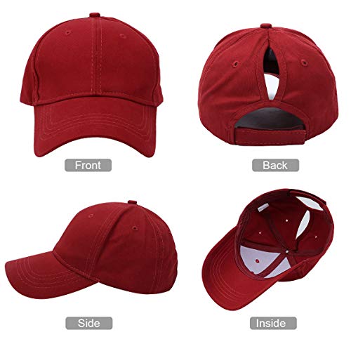 BLURBE Cappellino da Baseball Donna - Berretto da Baseball di Coda di Cavallo, Tinta Unita Berretto di Coda di Cavallo Regolabile con Visiera per Sport All'aperto (RossaA)