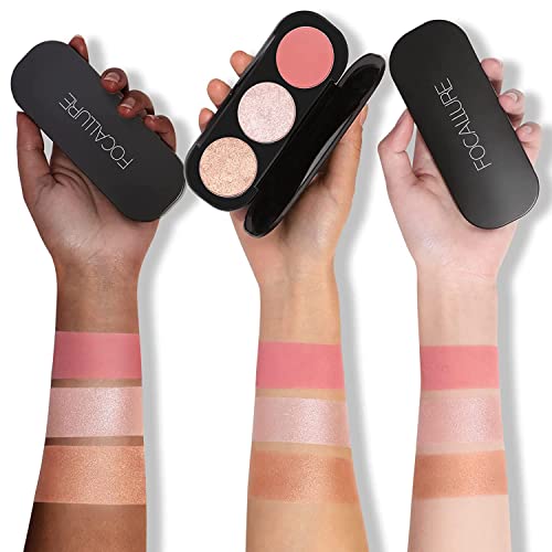 【3 in 1 palette per il trucco】 Questa palette trucco multifunzionale comprende fard e highlighter, con texture opache e shimmer, che possono creare diversi look di trucco.