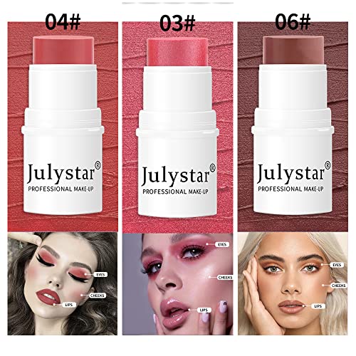 Blush Stick Cream, Fard in Crema, Stick per Fard in Crema, Fard in Crema Waterproof per Guance, Rossetto Blush Stick 3-in-1 Occhi Cheek e Lip Tint, Fard Ideale Regalo per Le Donne(04)