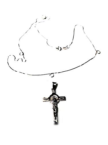 BLUSUPERSHOP ciondolo e collana 45cm ARGENTO 925 CROCE DI SAN BENEDETTO alta 3 cm circa,colore argento IN OMAGGIO RICEVI UN AMULETO CORNI PORTAFORTUNA
