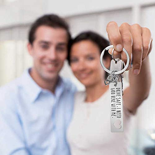 BluVast Drive Safe, portachiavi caldo, coppia di portachiavi con scritta “I Need You Here with Me”, creativo regalo per papà, marito, fidanzato