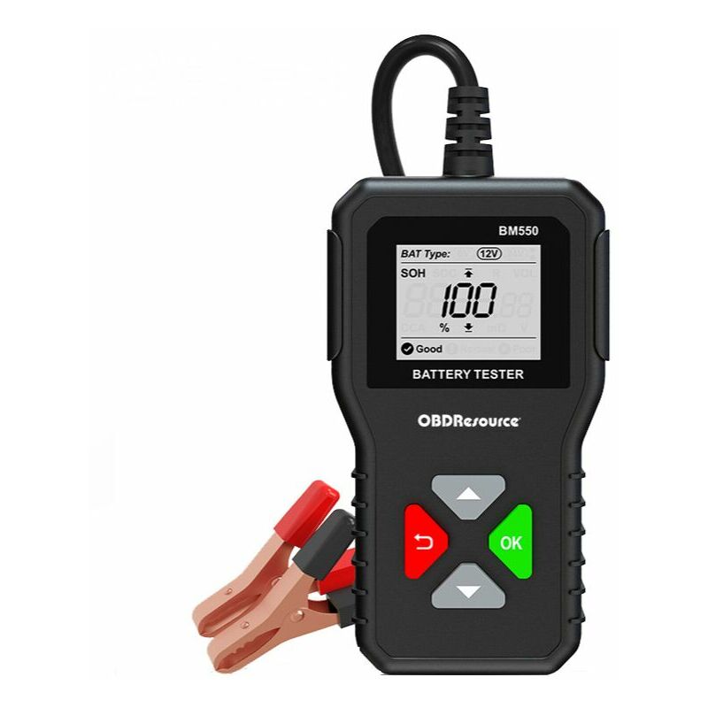 Mostra dati batteria estesi - Applica l'analizzatore batteria per misurare con il metodo di conducibilità più recente, il tester analizzerà la batteria e fornirà risultati accurati del test. Compresi test di resistenza interna, test di tensione, stato di salute (SOH), stato di carica (SOC) e test del valore CCA. [Velocità elevata, accuratezza del 99,6%] Il microprocessore Smart integrato fa il test relativamente veloce e preciso. I risultati del test possono essere visualizzati in due secondi. 【Tester batteria per auto】 BM550 può testare tutte le batterie 6V/12V/24V 100-2000CCA, comprese le normali bobine allagate, AGM piatte, AGM o gel. Fornisce un'analisi generale dello stato della batteria per aiutarti a comprendere le condizioni delle batterie prima che si esauriscano. I risultati dei test si basano sugli standard CCA. [Plug and Play] L'analizzatore di carico batteria BM550 consente di testare le batterie dell'auto e dell'auto, anche quelle scariche. Basta collegare la clip del