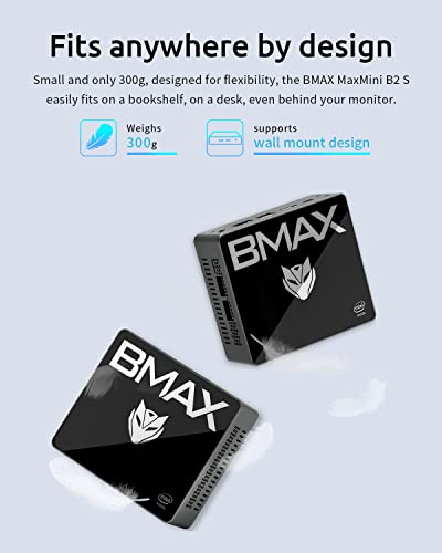 BMAX➤ 【MINI PC ad alta efficienza】 Il design della ventola silenziosa integrato migliora la dissipazione del calore, supporta Wake-on-LAN, Auto Power On e PXE. BMAX B2S Mini PC è il mini desktop ideale per casa, ufficio, media center, segnaletica digitale, sicurezza e sorveglianza digitali e altro ancora.