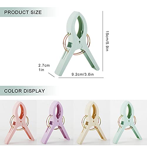 Grandi dimensioni: le clip per telo mare hanno una dimensione di 1,06 * 5,91 * 3,62 pollici (2,7 * 15 * 9,2 cm). La bocca della clip può estendersi fino a 3,15 pollici (8 cm). Perfetto per fissare oggetti spessi o asciugamani su bastoncini, stendibiancheria, lettini, lettini e sedie. Evita che i tuoi oggetti vengano portati via dal vento.