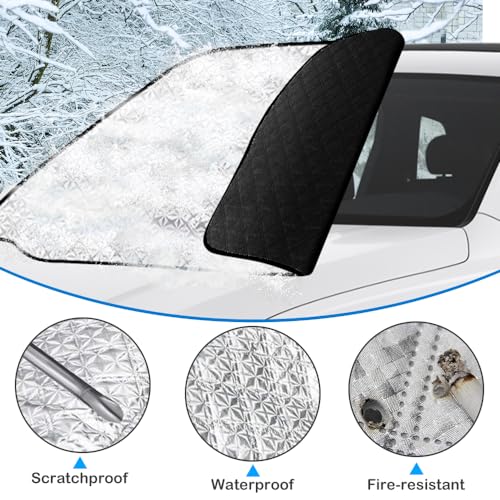【Copri Parabrezza Impermeabile】La nostra copertura per parabrezza auto è realizzata con 4 strati di foglio di alluminio PEVA, cotone filato, fodera in pile nero e cotone composito. Il materiale ultra-spesso, il rivestimento in alluminio bifacciale, la resistenza alle alte temperature e la resistenza allo strappo rendono il nostro copriparabrezza riutilizzabile anno dopo anno.