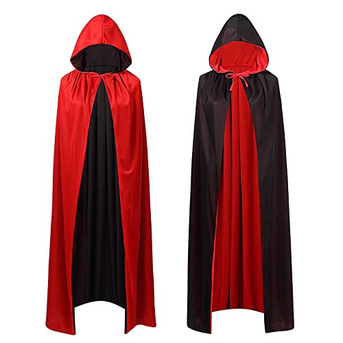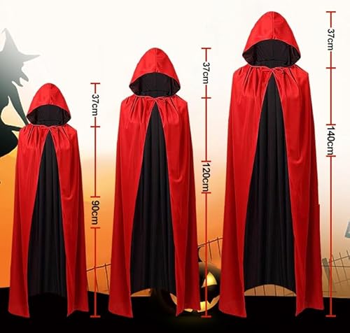 BNGXR Mantello Vampiro,140cm Lungo Reversibile con Cappuccio Capo Demone Vampiro, Bambini e Adulti Capo Vampiro Halloween Costume Cosplay per Halloween Masquerade Vampiro Strega Capo Nero Rosso