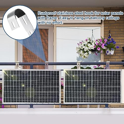 【Materiale Resistente】 I ganci da balcone per pannelli solari sono realizzati in acciaio inossidabile, resistente alla corrosione e di lunga durata.
