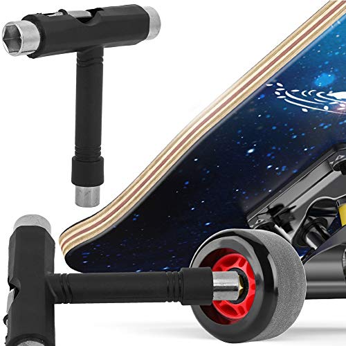 [WELL DESIGN] Chiave a forma di T, può essere utilizzata per allentare e regolare i chiodi del ponte principale, i dadi terminali e i chiodi a ponte della chiave a forma di skateboard.L.può essere abbinata alla chiave a forma di T per il fissaggio a vite della piastra.