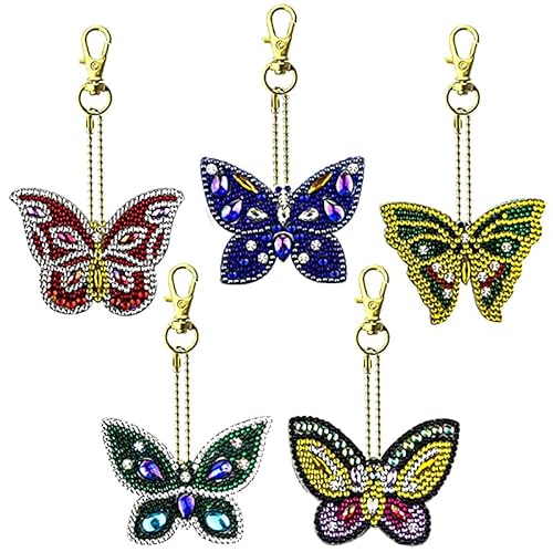 Bnnrjia 5 Pezzi 5D DIY Farfalla Pittura Diamante Portachiavi, Fai da te 5D Strass Diamond Art Painting Full Drill Keychain Pendente Portachiavi per Decorazione Borsa Borsetta Portafoglio Regalo