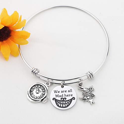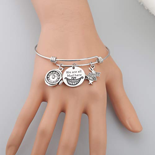 Bnql - Braccialetto con ciondoli ispirato al Cappellaio Matto di Alice, regolabile, Acciaio inossidabile