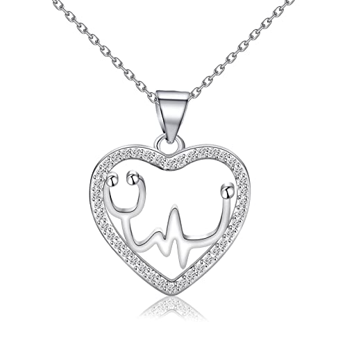 BNQL Collana da infermiera, con stetoscopio, a forma di cuore, gioielli per infermieri, regali ispiratori per colleghi, studenti, lauree, regalo, Acciaio inossidabile
