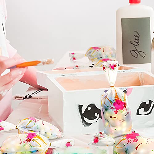 Boao 100 Sacchetti per Feste di Unicorno Magico Sacchetti di Caramelle a Tema Unicorno in Plastica Sacchetti per Feste di Unicorno Sacchetti per Dolcetti di Unicorno con Nastri da Annodare