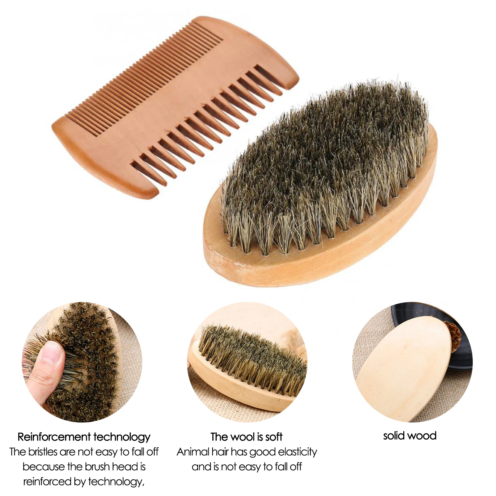 Men Boar Bristle Beard Mustache Combs Hair Brush Wood Handle Boar Mustache Styling Detangling Straightener For Facial Beard Comb