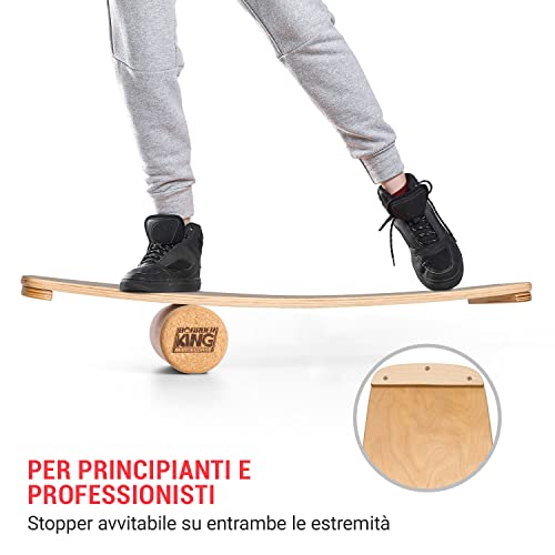 BoarderKING Indoorboard Curved - Balanceboard, Skateboard, Surfboard, Trickboard, incl. Rullo di Sughero 10/40 & Tappetino Antiscivolo, Materiali: Legno & Sughero, Legno/Nero