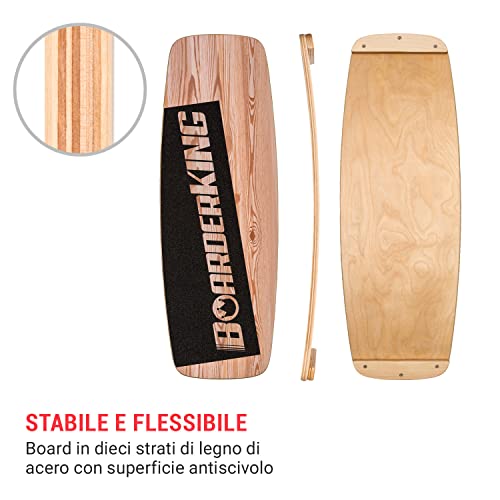 QUALITÀ: qualità che si vede e si sente: la balance board Indoorboard Curved di BoarderKING è progettata e costruita in Germania. Grazie alla struttura composta da 10 strati di legno d'acero, assicura stabilità e flessibilità elevate.