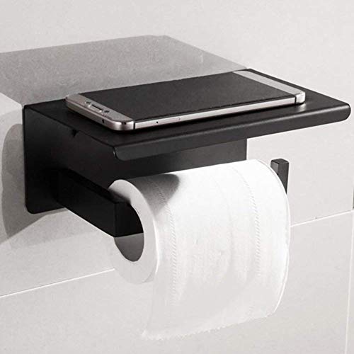 BOATX - Portarotolo per carta igienica da bagno, con ripiano, nero opaco, 2 in 1, per bagno, cucina, WC, montaggio a parete, foratura