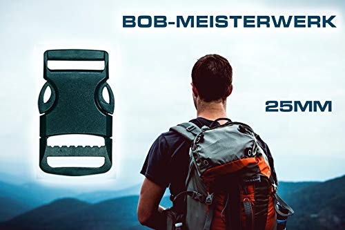 ✅ ALTA RESISTENZA QUALITÀ: Realizzata in plastica POM resistente di alta qualità. La nostra fibbia a scatto di ricambio è ideale per riparare la fibbie plastica dello rotta. Premium Plastic Connecting Tubes Very stable and high strength for 25 mm wide webbing from the manufacturer BOB MEISTERWERK. The female part of the spare buckle is reinforced at the edges to increase stability. Prodotto nell'Unione Europea