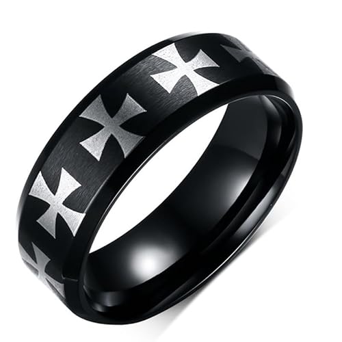 BOBIJOO JEWELRY - Anello di Alleanza Anello Croce Templare Uomo Nero dell'Acciaio Inossidabile - 14 (7 US), Acciaio Inossidabile 316