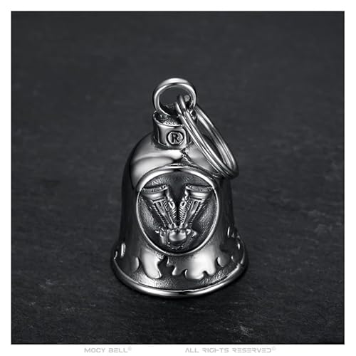 BOBIJOO JEWELRY - Clochette moto V-TWIN MOTOR Porte-bonheur MOCY BELL Acier inoxydable Argent
