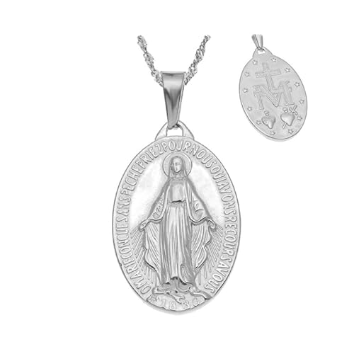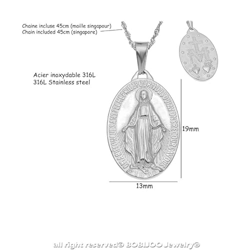 BOBIJOO JEWELRY - Piccolo Ciondolo Collana Medaglia di Maria Vergine in Acciaio, Argento, Donna-Bambina, Catena