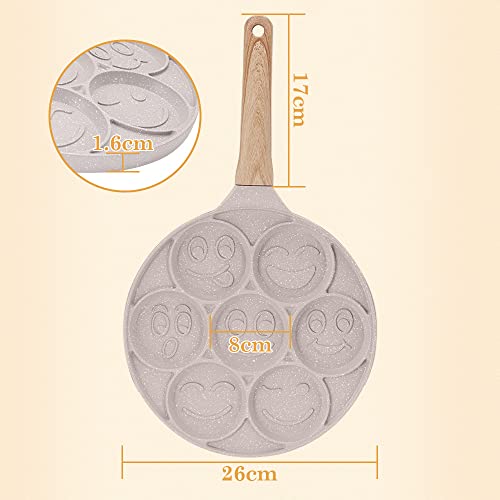 RISPARMIA IL TEMPO DELLA COLAZIONE - Questa padella pancake è perfetta per preparare frittelle, come torta di mais, frittella vegetale, frittella all'uovo e così via. Il buco super carino con 7 faccine può facilmente preparare 7 pancake o 7 tipi di cibo allo stesso tempo, il che può far risparmiare molto tempo alla colazione e portare comodità nella tua vita.