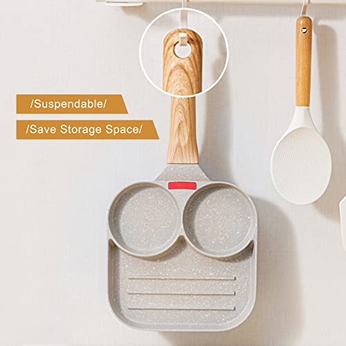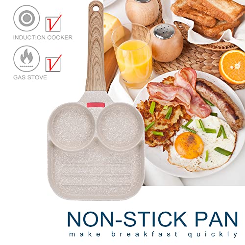 DESIGN MULTI-SEZIONALE - La padella per uova fritte ti consente di cucinare 3 cibi ancora più diversi contemporaneamente, piuttosto che doverlo pulire ogni volta che ne griglia uno. È facile friggere separatamente pancetta, uova, pancake e bistecche.