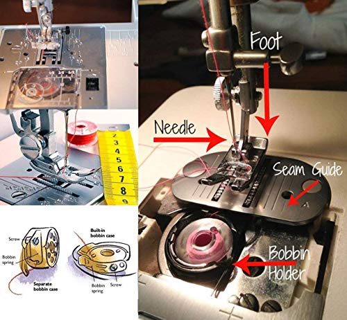 【Design perfetto】 Lo stile di design semplice coprirà le tue esigenze di cucito. Facile da usare e da usare, può aiutarti a finire rapidamente un progetto o creare vestiti, l'angolo delle bobine trasparenti della macchina da cucire è liscio e lucido, non spezza il filo. Puoi avvolgerli comodamente.
