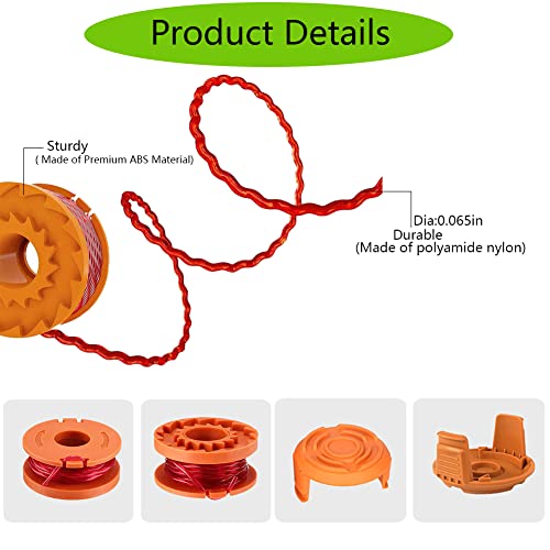 Bobine Ricambio Per Tagliabordi, 14 Pezzi Ricambio Per Bobine Compatibili Con Worx Wa0010 Tagliabordi Corda Ricambio Per Bobine Tagliabordi 3 M Di Lunghezza Wa6531 Copri Bobine (12 Bobine 2 Cappucci)