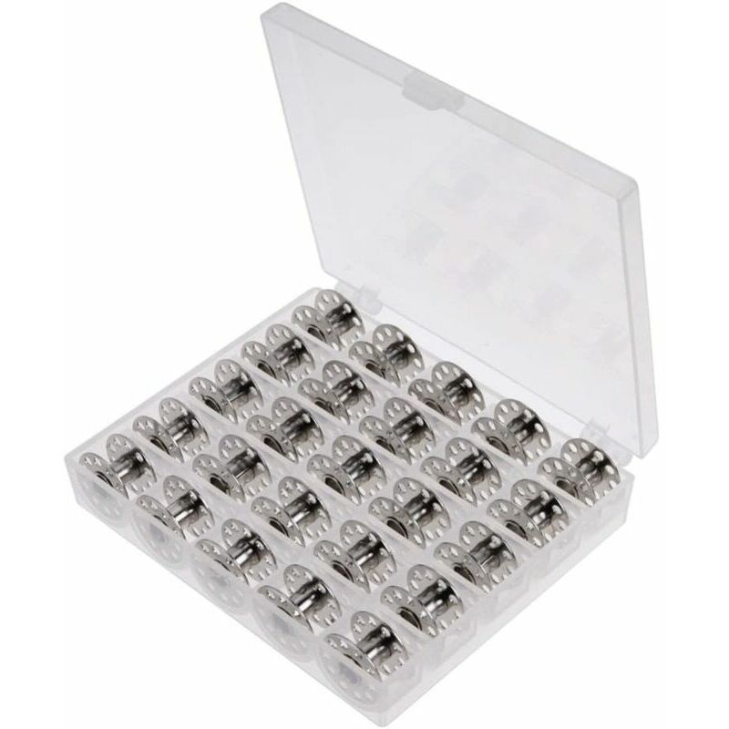 Bobine da cucito in metallo, adatte alla maggior parte delle macchine da cucire domestiche commerciali, come Brother, Singer, Bernina, Pfaff, Elna, Babylock, Kenmore, Juki, ecc. Diametro bobina 21 mm, altezza 12 mm, diametro foro centrale 6 mm, se il diametro originale del foro di avvolgimento della tua macchina è 6 mm, il nostro prodotto è adatto alla tua macchina. li> Set di 25 bobine per macchina da cucire con scatola portaoggetti, filo di cotone non incluso. li> Materiale: metallo duro resistente. Bellissime bobine metalliche standard con funzionamento regolare. Le dimensioni della scatola portaoggetti: 12 x 10 x 2,5 cm. Peso totale: 135 gr. Descrizione del prodotto Specifiche: Colore: bobina di filo con scatola della bobina Se il diametro del foro della bobina originale della tua macchina è di 6 mm, il nostro prodotto è adatto alla tua macchina. Br> Adatto per la maggior parte delle macchine da cucire standard come Brother, Singer, Bernina, Pfaff, Elna, Babylock, Kenmore