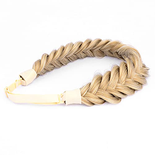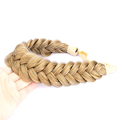 Bobiya Fascia elastica ampia con capelli sintetici, 2 fili, disordinati, intrecciati, classica, spessa, elastica, marrone sabbioso