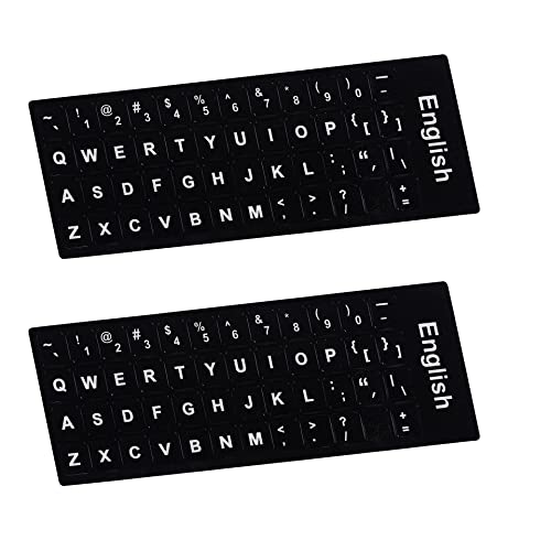 BOBOZHONG Coperchio della Tastiera Inglese del PVC,2 Pezzi Tastiera Autoadesivi Adesivi Tastiera Stickers Sfondo Nero con Scritta Bianca per Tastiera,per Computer Portatile Notebook