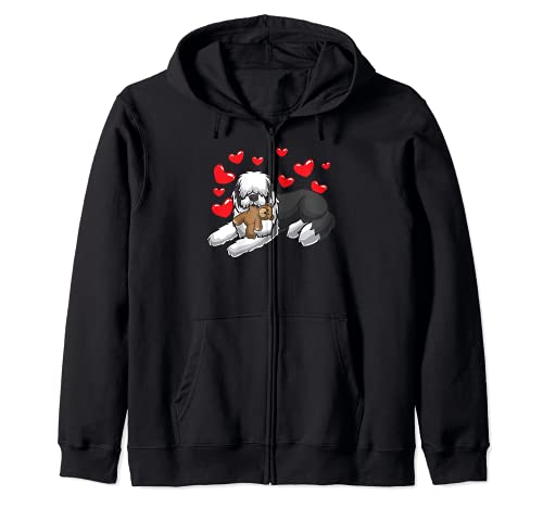Bobtail Cane Con Animale Ripieno E Cuori Felpa con Cappuccio