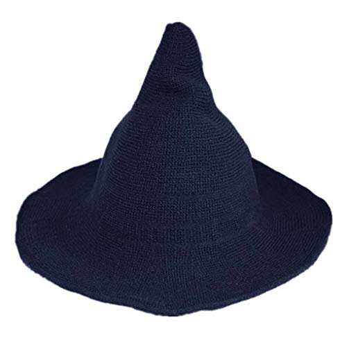 Bobury Donne Moderne Strega di Halloween Cappello Pieghevole Costume Sharp Punta in Feltro Berretto Autunno Inverno Caldo, Dark Blue, 58-62 cm
