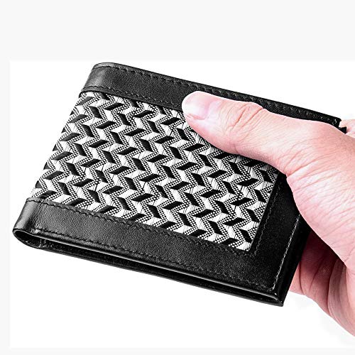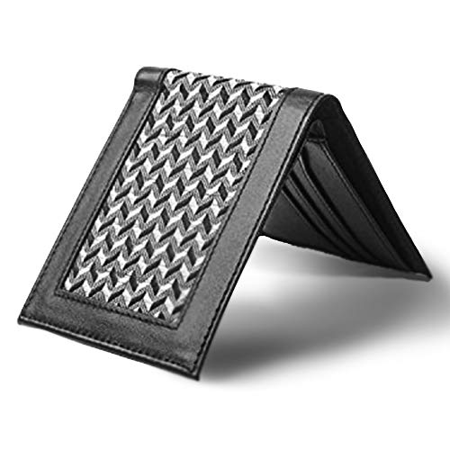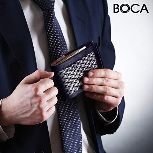 Boca, portafoglio da uomo, da tasca, con tecnologia di blocco RFID, pieghevole. Modello ultra sottile e minimalista. Custodia per carte di credito, in vera pelle, con sistema di protezione per carte di credito Blue_Black_Woven