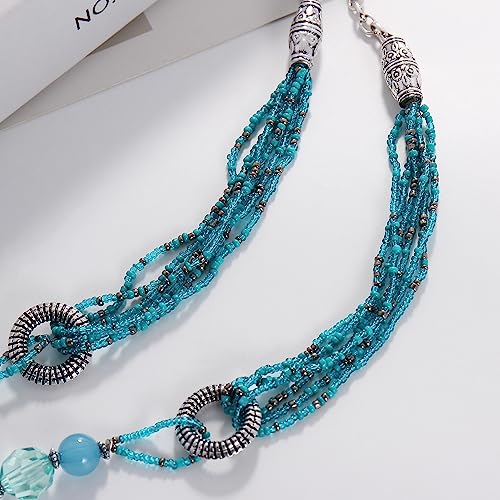 Bocar Collana Lunga Multistrato Donna Collana Fatta a Mano Perline Chian Collana Regalo (NK-10349-teal)
