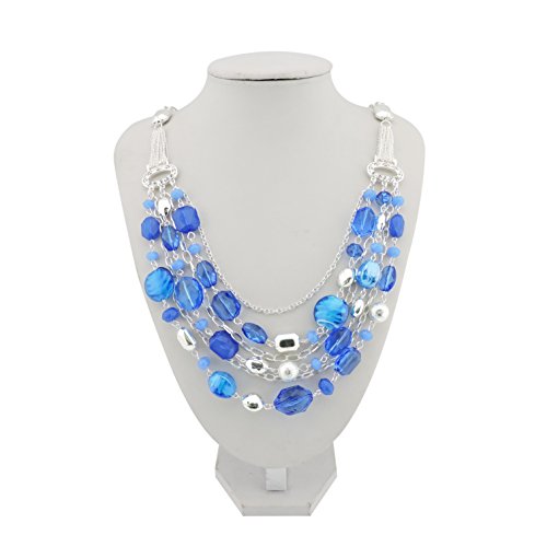 Bocar, Collana Multistrato con catenine, Smaltata e con Cristalli Colorati, per Donna (NK-10061-royalblue)