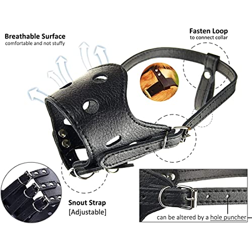 Bocca di cane in pelle artificiale con fibbia regolabile per evitare di mordere, abbaiare e mangiare, anti-morso (XL)