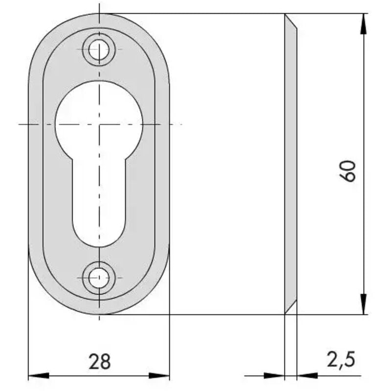 Bocchetta in nylon nero foro cilindro europeo. Dimensioni mm.60x23x4