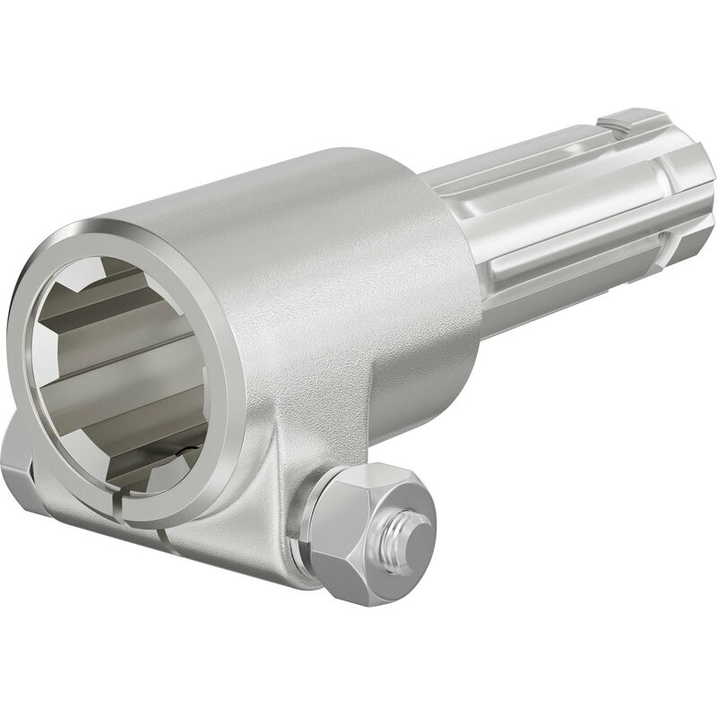 Boccola per albero cardanico Lunghezza: 140 mm Attacco albero scanalato: 1⅜″, 6 scanalature Attacco albero di uscita: 1⅛″, 6 denti Diametro: 36 mm (interno, con scanalature), ø 28,52 mm (esterno, con denti) Un albero cardanico (anche detto albero presa di forza) di alta qualità è un elemento essenziale nel settore agricolo, poiché trasmette la potenza del trattore a diversi tipi di macchine agricole. Un componente spesso indispensabile per la trasmissione di potenza è la boccola del cardano come adattatore con due lati di collegamento. Un lato presenta un profilo maschio o esterno, l'altro un profilo femmina o interno. Questo pezzo di collegamento viene utilizzato per collegare il cardano del trattore e l'albero cardanico in modo da poter azionare un attrezzo trainato. Il pezzo viene spinto su entrambe le estremità, le scanalature del profilo interno impediscono all'albero di ruotare. Il numero di denti e scanalature nel profilo interno ed esterno della boccola può variare. Il nostro