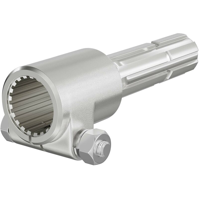 Boccola per albero cardanico Lunghezza: 160 mm Attacco albero scanalato: 1⅜″, 21 scanalature Attacco albero di uscita: 1⅜″, 6 denti Diametro: 36 mm (interno, con scanalature), ø 34,87 mm (esterno, con denti) Un albero cardanico (anche detto albero presa di forza) di alta qualità è un elemento essenziale nel settore agricolo, poiché trasmette la potenza del trattore a diversi tipi di macchine agricole. Un componente spesso indispensabile per la trasmissione di potenza è la boccola del cardano come adattatore con due lati di collegamento. Un lato presenta un profilo maschio o esterno, l'altro un profilo femmina o interno. Questo pezzo di collegamento viene utilizzato per collegare il cardano del trattore e l'albero cardanico in modo da poter azionare un attrezzo trainato. Il pezzo viene spinto su entrambe le estremità, le scanalature del profilo interno impediscono all'albero di ruotare. Il numero di denti e scanalature nel profilo interno ed esterno della boccola può variare. Il nostro