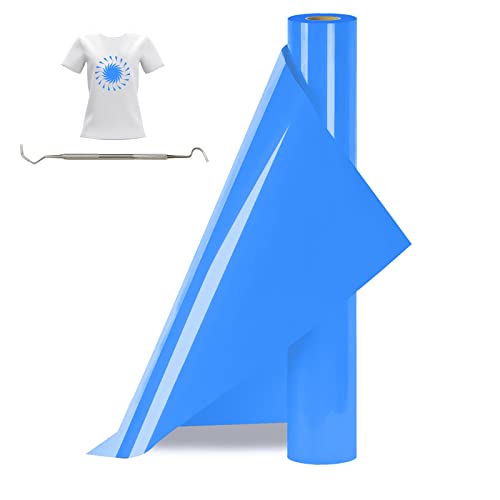 Bocguy Vinile Termoadesivo per Tessuti Blu, 30.5 CM X 377 CM Rotoli di Vinile Trasferimento Termico con Gancio, Termovinile per Cricut e Cammeo (Blu Mare)