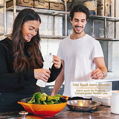 AMPIA GAMMA DI APPLICAZIONI: Un sale e pepe set portatile, pratico e azionato manualmente è un eccellente aiuto da utilizzare per picnic, cene, feste, cucina, barbecue e ristorante. Le smerigliatrici professionale in ceramica sono adatte per quasi tutti i tipi di spezie come sale marino, sale e pepe cristallino di alta qualità, cumino, timo, molto altro ancora, semi di sesamo, rosmarino, ottimo per uso domestico o da chef.