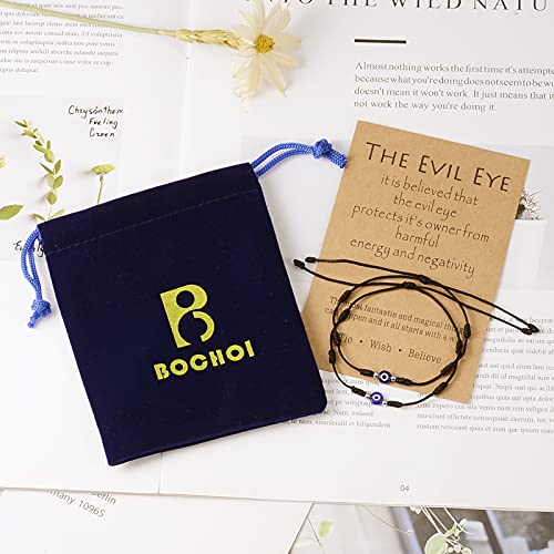 BOCHOI Bracciale da donna con 7 nodi, colore nero, con amuleto protettivo Lucky Ojo Turco, per uomini, ragazze, ragazzi, famiglia, coppia di migliori amici, Nylon, Senza Gemstone,