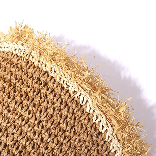 Boderier Cappello di Paglia da Donna Cappello da Sole da Spiaggia Sfrangiato all'Uncinetto Pieghevole Cappello di Paglia Estivo Floppy Beach Cappelli per Le Donne, Cachi, Taglia Unica