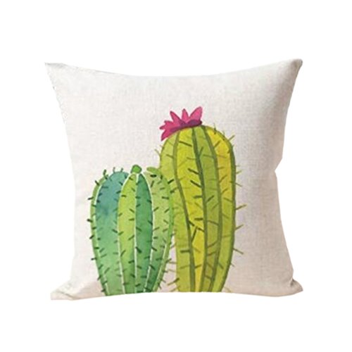 Bodhi2000 Housse de coussin en lin motif cactus, 45 cm x 45 cm, Lin, style 3, Taille unique