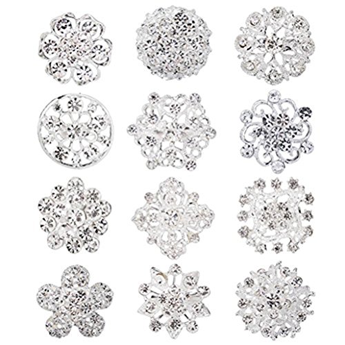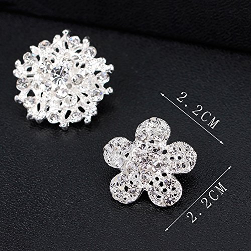 Bodhi2000 12 spille a forma di fiore con strass, cave, lucide, da sposa, idea regalo di Natale, Argento, Taglia unica