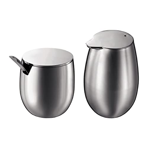 Si compone di un bricco per latte e una zuccheriera in elegante design in acciaio inox cromato, in modo che oltre alla sua funzionalità convince anche esternamente.