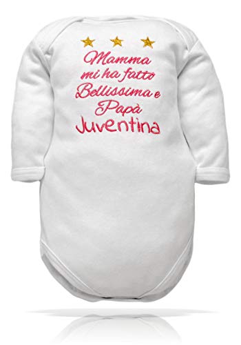 Body neonato divertenti frase Mamma mi ha fatto bellissimo e papà Juventino (Body Ricamo Juventina in Caldo cotone, 6-9 mesi)