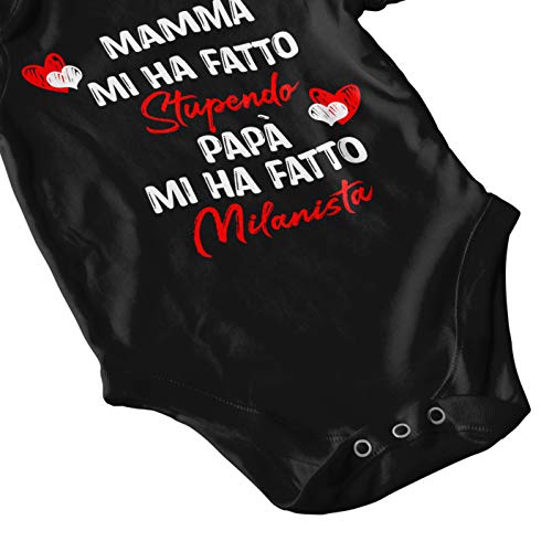 Body Neonato Manica Corta - Mamma mi ha fatto Stupendo, Papà mi ha Fatto Milanista - Tutina Divertente Bimbo Manica Corta Unisex 100% Cotone Morbido - Simpatica Idea Regalo neopapà 12- 18 mesi